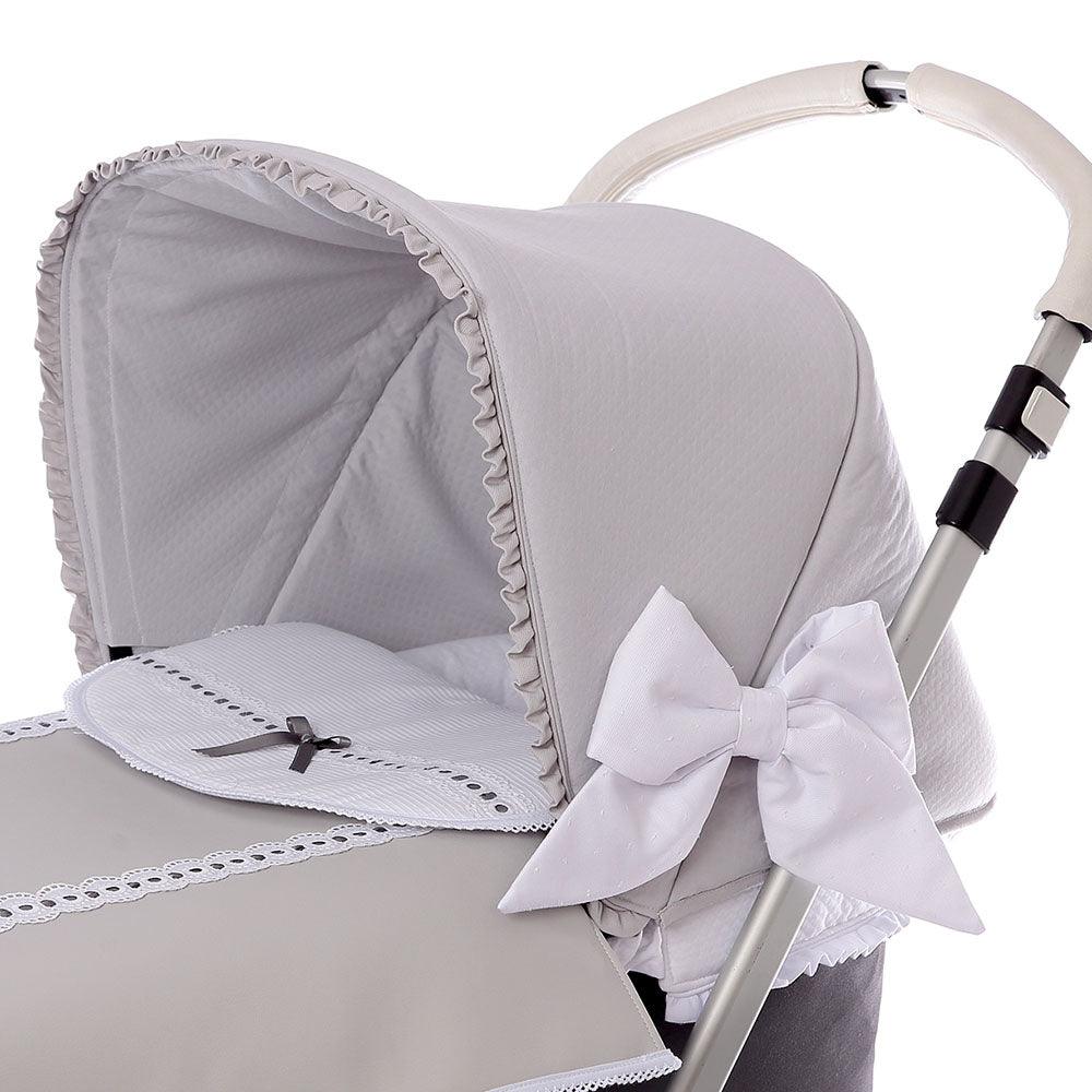 Calidad artesanal superior de confección española con las mejores calidades en tejidos, puntillas y confección. En Nanetes somos especialistas en carro de bebe personalizado.